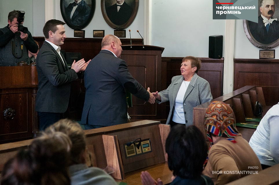 Сьогодні у Ратуші секретар Чернівецької міської ради Василь Продан та директор департаменту ЖКГ Володимир Бешлей відзначили двірників, які прибирали Чернівці після Дня міста.
