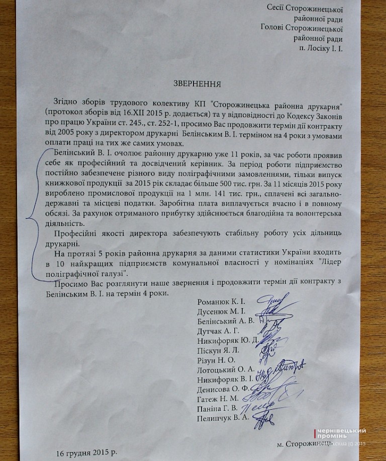 Раніше колектив друкарні написав спільне звернення на ім’я голови райради з проханням продовжити термін дії контракту з директором терміном на 4 роки.