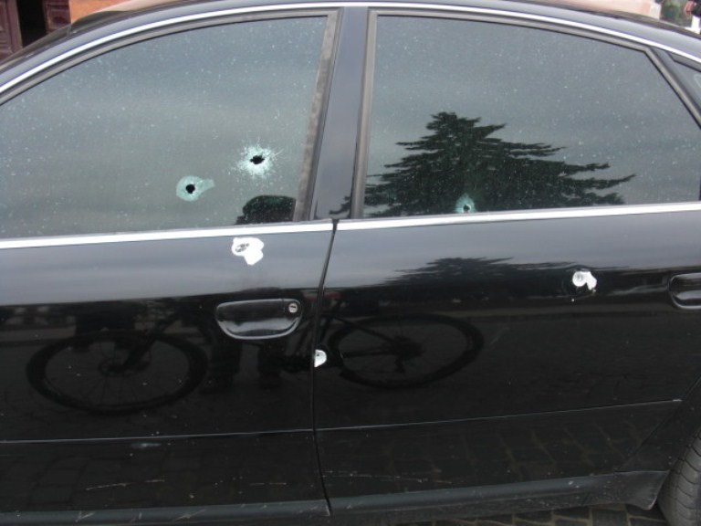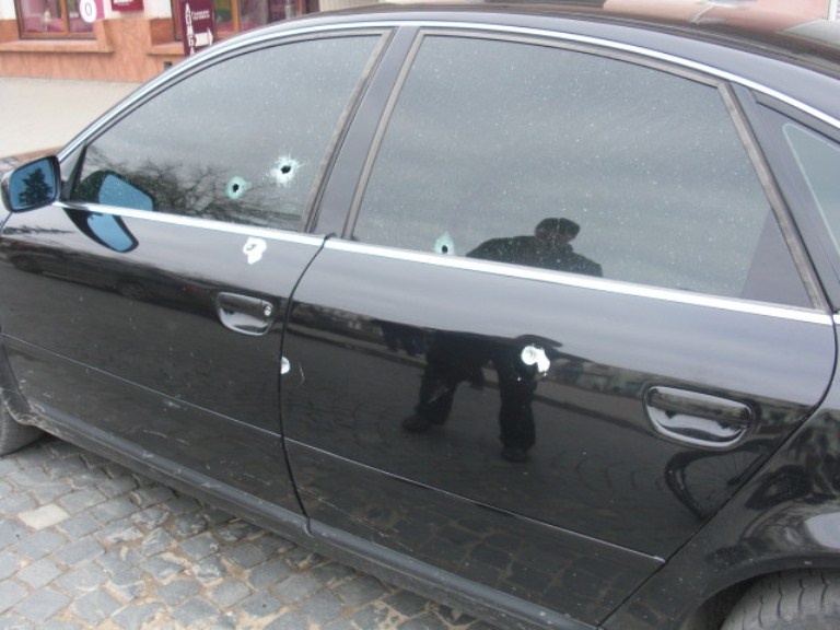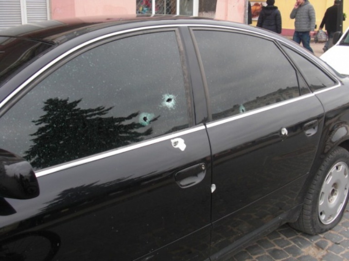 автомобіль.Було зроблено шість пострілів: три по салону, ще три – у дверцята водія.