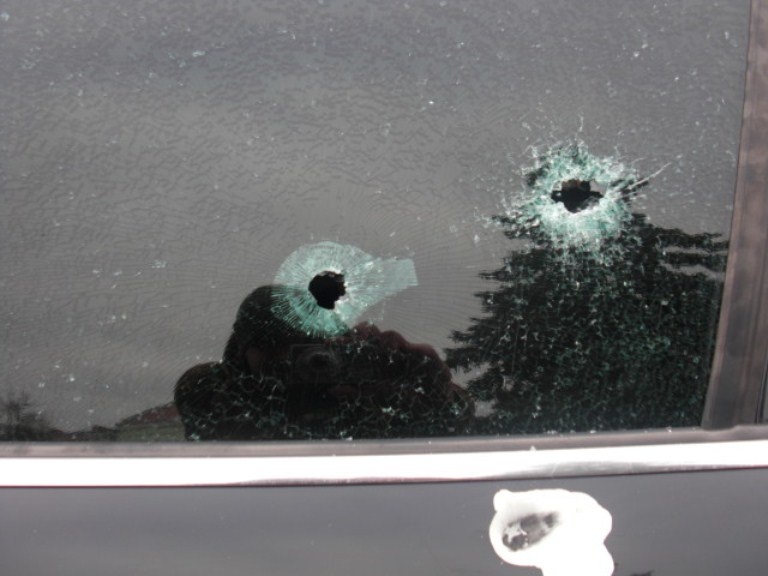 автомобіля було зроблено шість пострілів з травматичної зброї.