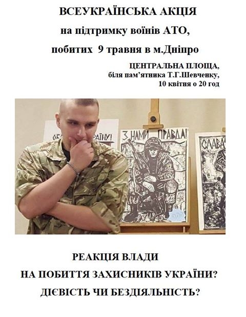 У Чернівцях у рамках всеукраїнської акції підтримають воїнів АТО, побитих 9 травня у Дніпрі. Акція відбудеться на Центральній площі 10 травня о 20.00.