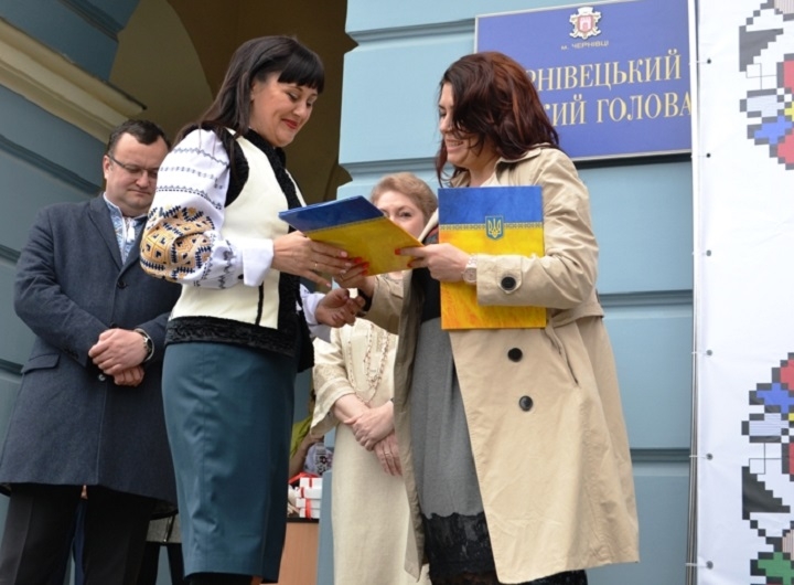 За дорученням голови Чернівецької облради Івана Мунтяна вона вручила Почесні грамоти Чернівецької обласної ради майстрині української вишивки, члену Національної спілки майстрів народного мистецтва України Марії Манчуленко та заслуженому майстрові народної творчості, художнику–орнаменталісту Михайлові Покиданцю.