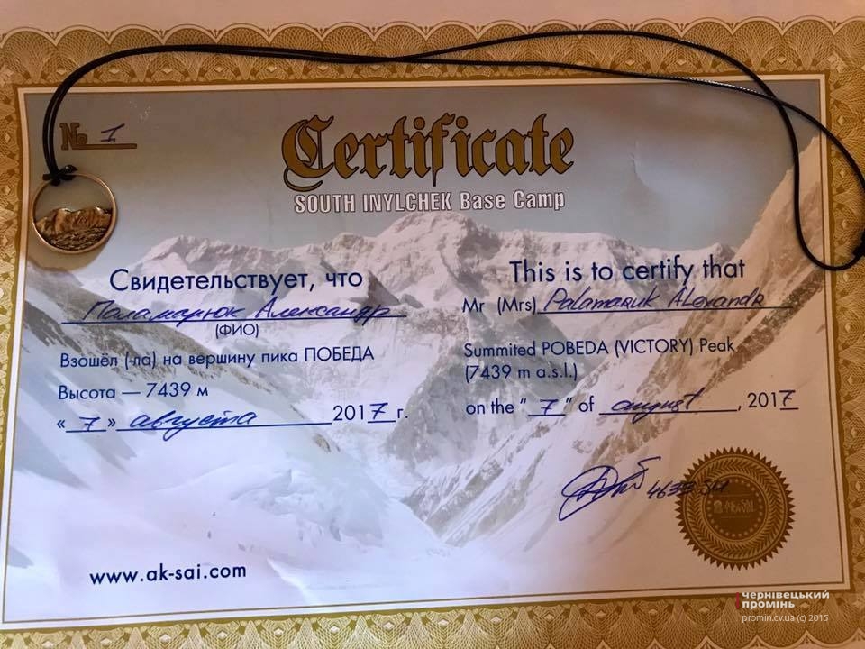 Чернівецький альпініст Олександр Паламарюк здійснив успішне сходження на вершину Пік Перемоги (7439 метрів). Це найбільш