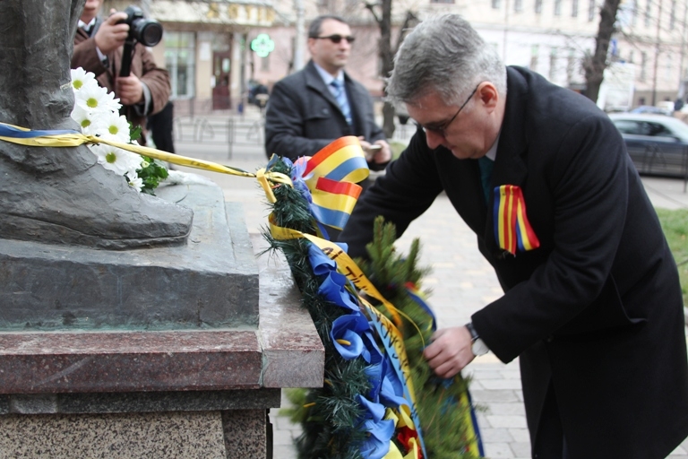 Сьогодні, 1 грудня, з нагоди відзначення Національного Дня Румунії, у Чернівцях поклали квіти до пам’ятника Міхая Емінеску.