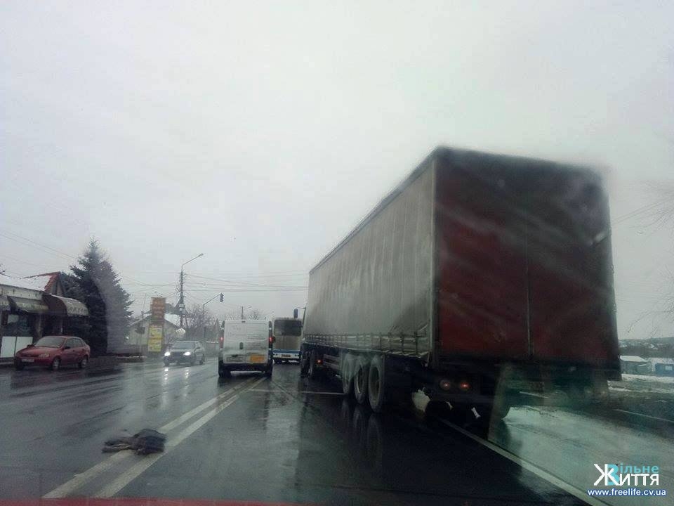 Як повідомляє Вільне життя, фура зіштовхнулася з легковим автомобілем. На дорозі лежить збитий собака. Можливо, сама тварина стала причиною ДТП.