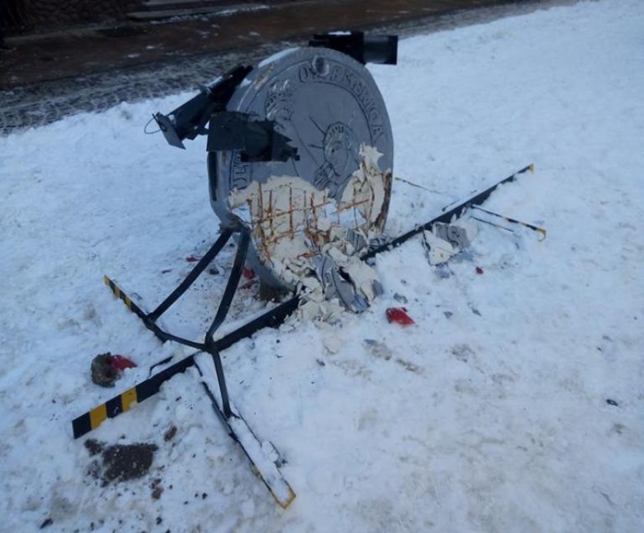 Скульптура не простояла і двох місяців. Величезну монету розтрощила вантажівка, яка розвозить вулицею О. Кобилянської продукти.