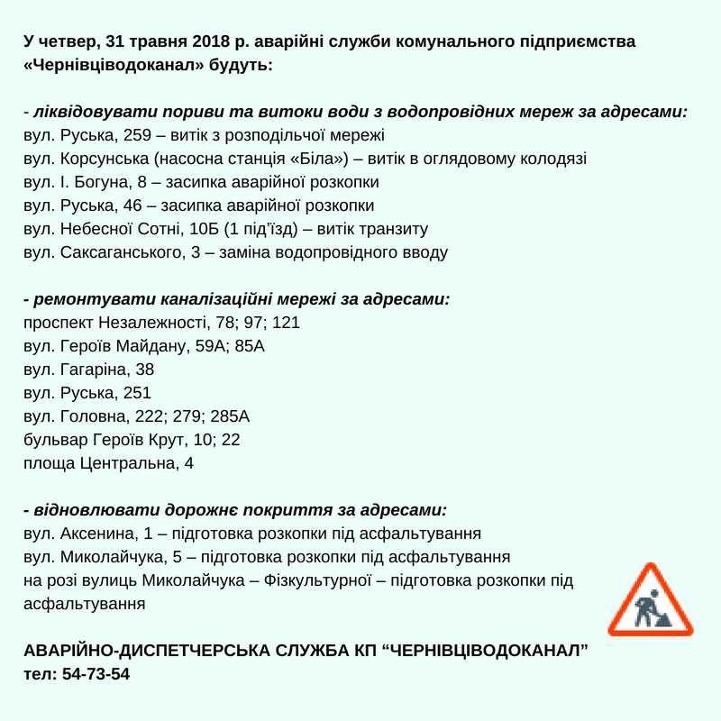 У Чернівцях працівники КП «Чернівціводоканалу» після проведення ремонтних робіт каналізаційних мереж на вулиці Головній, 285А залишили нечистоти поблизу житлових будинків. Світлини та відео з місця події опубліковані на сторінці chernivtsigram у мережі Instagram. Роботи були офіційно анонсовані прес-службою підприємства.