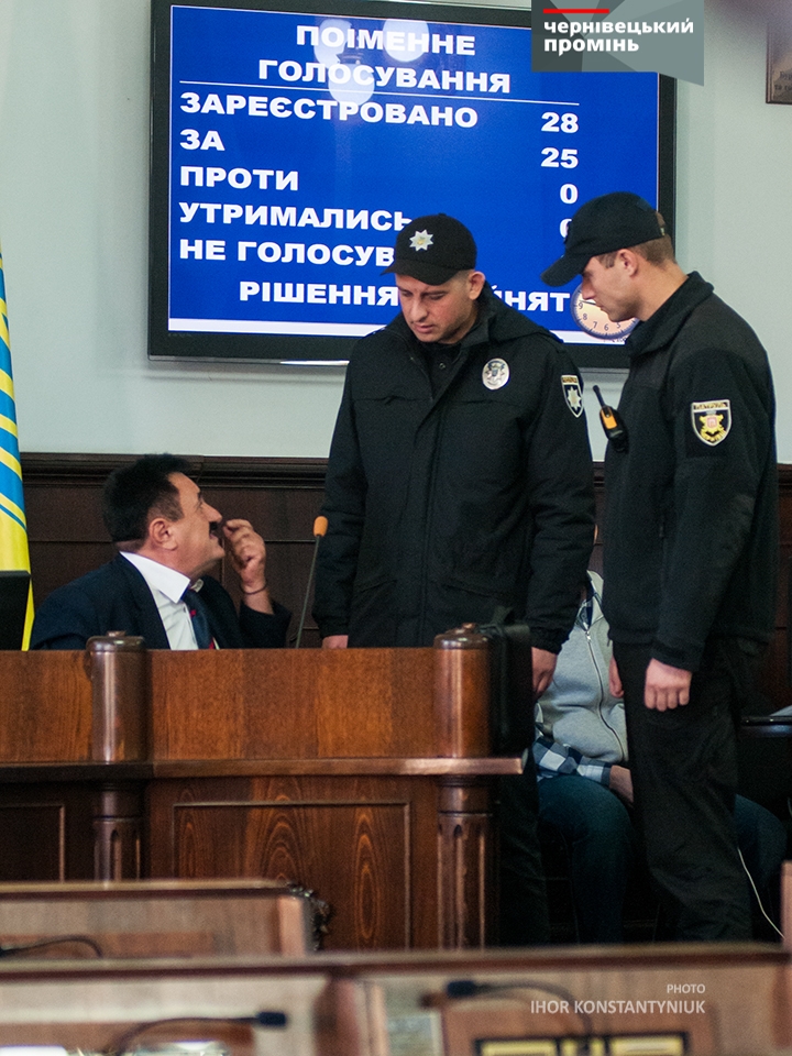 Також із сесійної зали вчергове вивели у супроводі поліції «народного бургомістра» Володимира Дідуха-Кобзаря.