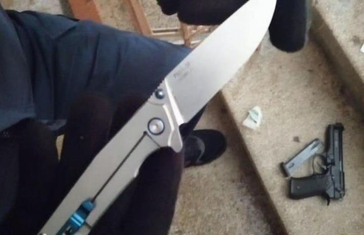 Згідно зі ст. 34 закону України «Про Національну поліцію» охоронці порядку провели поверхневу перевірку цього громадянина. В ході перевірки патрульні виявили пристрій, схожий на пістолет, складний ніж, ніж схожий на мисливський та таблетки невідомого походження.