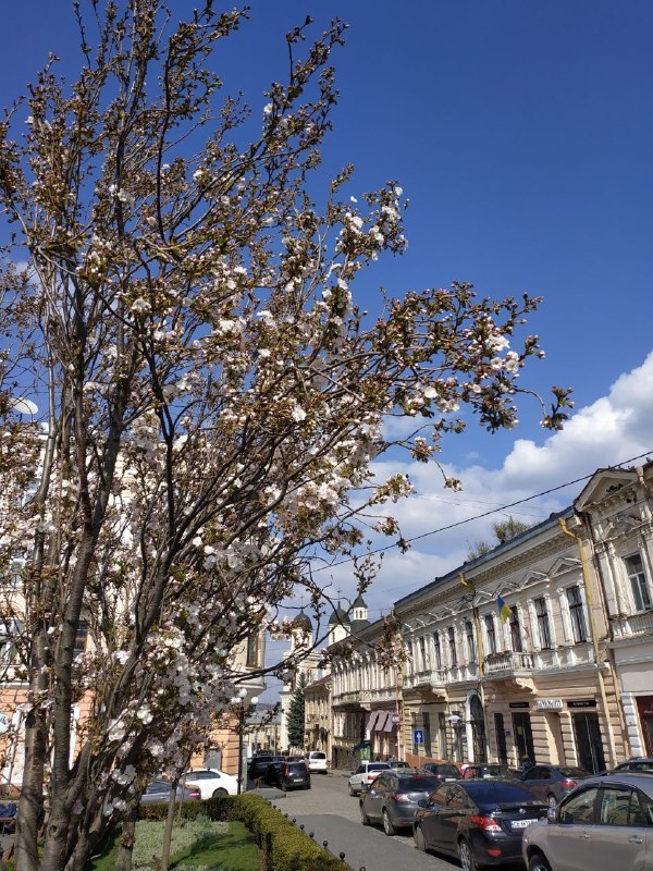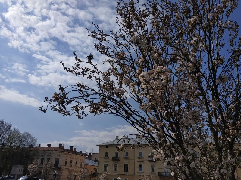 У Чернівцях на площі Філармонії розквітли сакури.