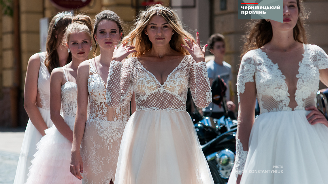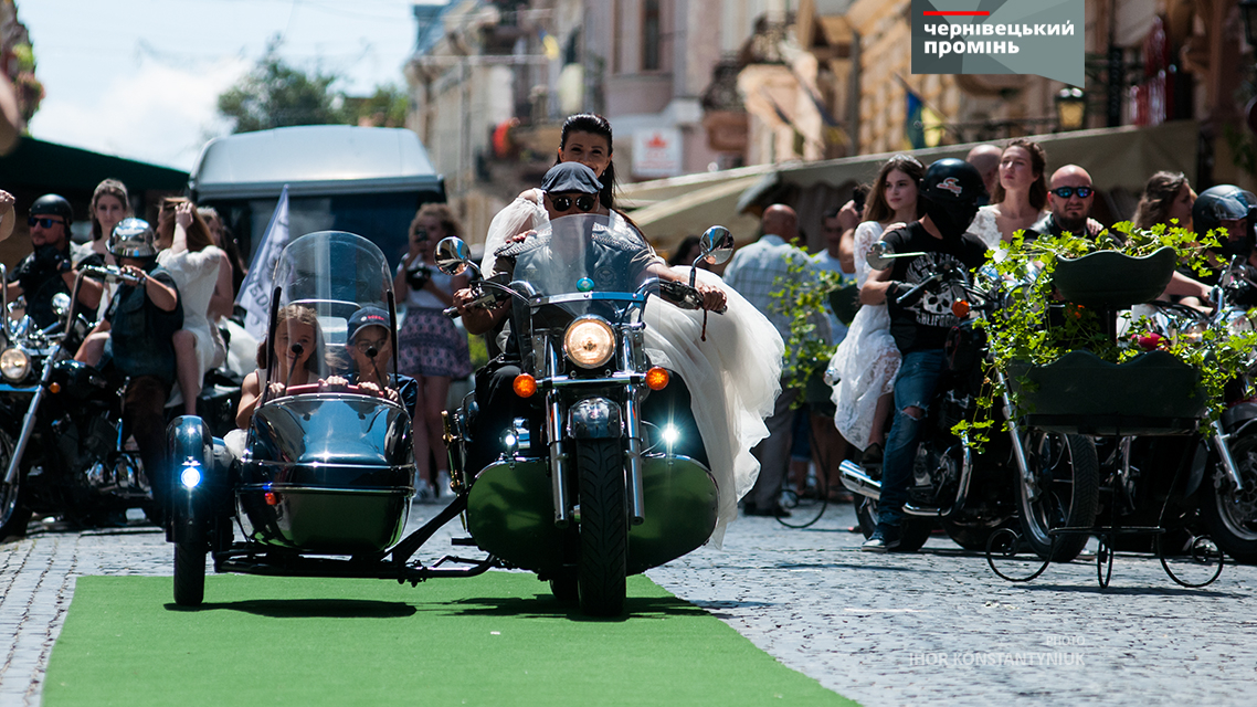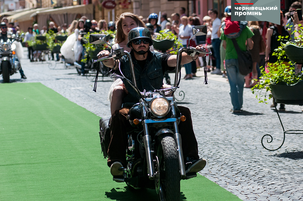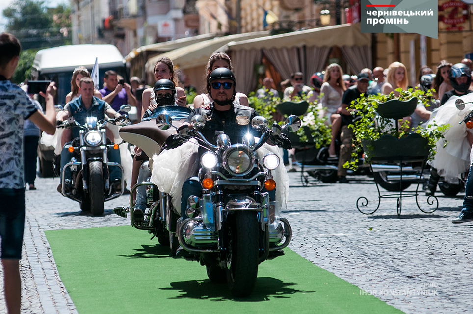 Сьогодні у рамках "Петрівського ярмарку" біля Центрального палацу урочистих подій відбулося "Байк-шоу" під час якого дівчата у весільних сукнях дефілювали вулицею Кобилянської на фоні мотоциклів. Також, ніжні наречені проїхалися з байкерами центром Чернівців.