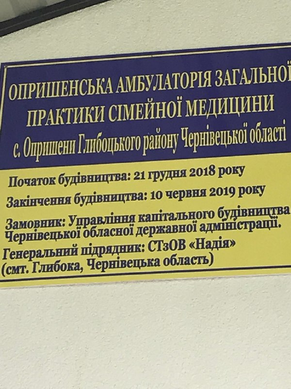 В Опришенах Глибоцького району відкрили нову сучасну амбулаторію. Заклад первинної медицини, площею майже 500 квадратних метрів, звели з нуля трохи більше ніж за пів року.