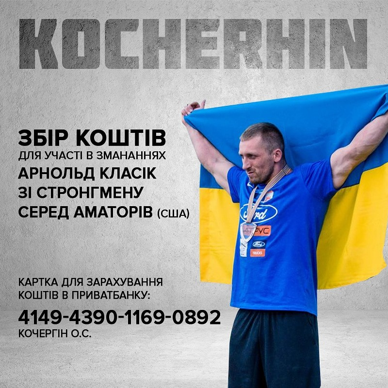 Чернівецький силач та учасник АТО Олександр Кочергін на своїй сторінці у фейсбуці звертається із проханням про допомогу. Богатир хоче взяти участь в одному з найпрестижніших конкурсів серед бодібілдерів - "Арнольд Класік". Торік він уже брав участь у цих змаганнях і посів місце у першій десятці. Аби позмагатися за золото чемпіонату, Олександрові потрібні гроші на підготовку, переліт і проживання, а це загалом приблизно 5 тисяч доларів.