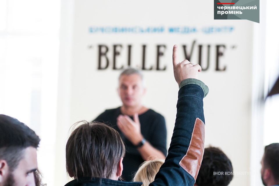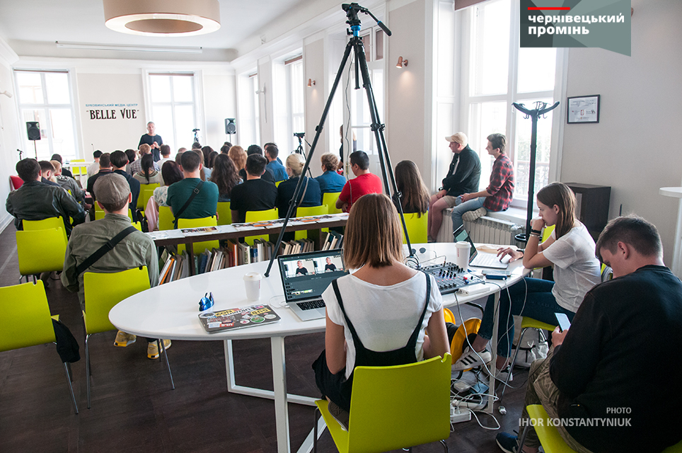 до Чернівців у рамках всеукраїнського туру "Камон, еврібаді!”Відомий журналіст Роман Скрипін разом зі своєю командою SKRYPIN.UA приїхав до Чернівців у рамках всеукраїнського туру "Камон, еврібаді!”. На зустрічі у медіа-центрі "Belle vue" зібрався повний зал.
