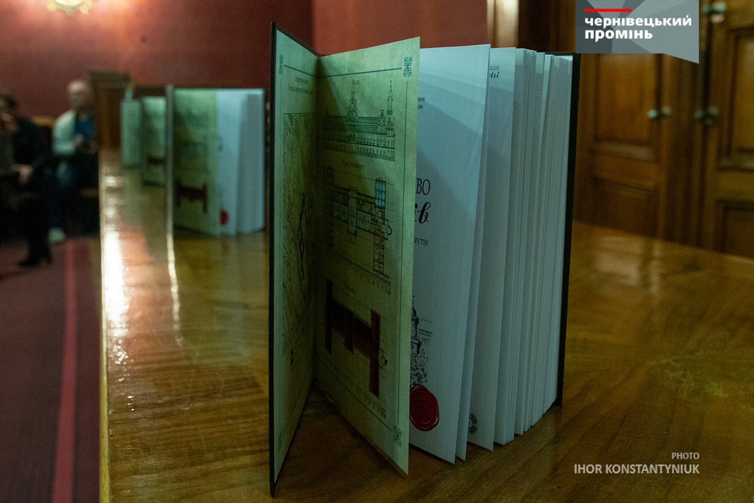 малюнків, фотографій та креслень Резиденції, які досі не були відомі науковцямА ще в книзі чимало розповідей про діяльність непересічних архітекторів Євгена Гакмана і Йозефа Главки, які проектували та зводили центральний корпус теперішнього ЧНУ імені Юрія Федьковича.