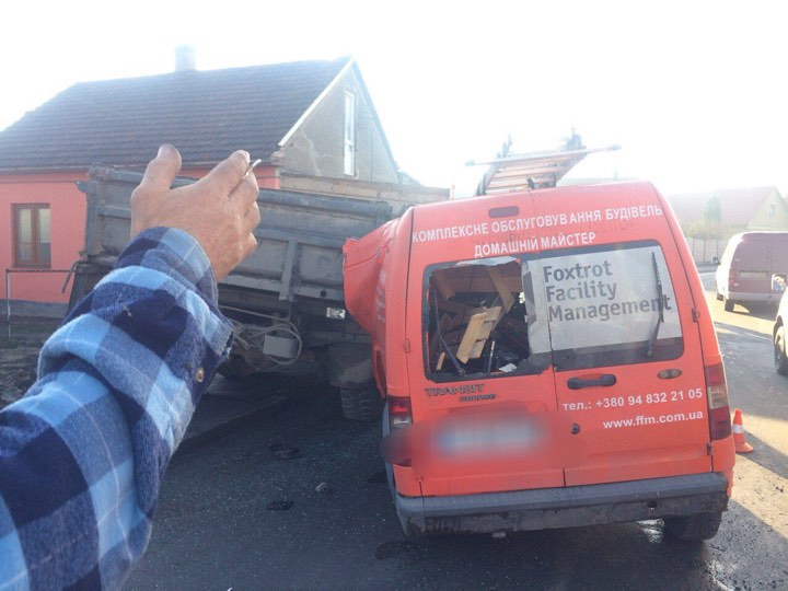 водій легковика. Попередній діагноз - забій м'яких тканин голови. Причини ДТП
