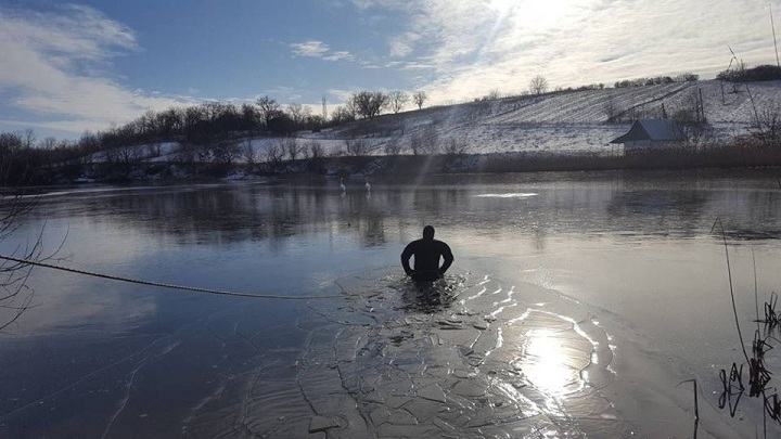 примерзли до криги, тому не могли злетіти. Прибувши до ставка, водолази за допомогою