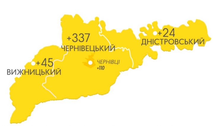 - Чернівецький район +337, із них 110 випадків – у Чернівцях