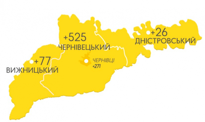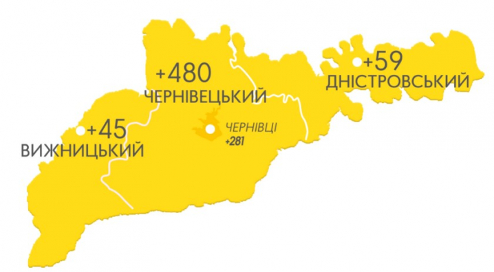 - Чернівецький район +480, із них 281 випадок – у Чернівцях
