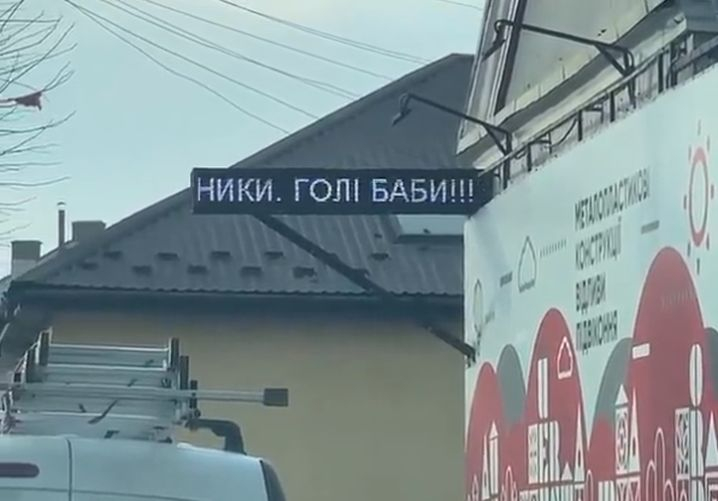У Чернівцях на вулиці Чкалова один з магазинів незвично рекламує свої товари. На фасаді будівлі горить вивіска з написом "Мастило. Омивач. Очисники. Голі баби!!!"