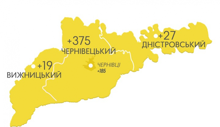 - Чернівецький район +238, із них 151 випадок – у Чернівцях