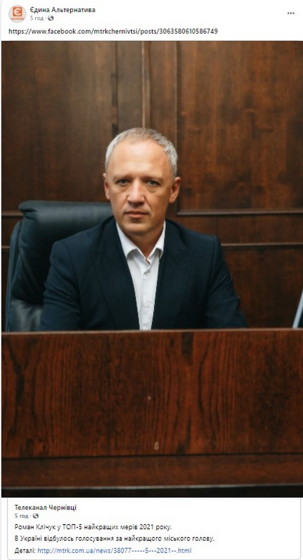 РекламаТелеканал «Чернівці», який належить пасинку мера, похизувався, що міський голова Чернівців Роман Клічук увійшов у 5-ку кращих мерів України. Ну як кращих, тих за кого проголосували на одному із київських сайтів. Ботоферма «Єдиної альтернативи» трохи накрутила рейтинг Клічуку, щоб уникнути ганьби і зробити йому подарунок після повернення з Коста-Ріки.