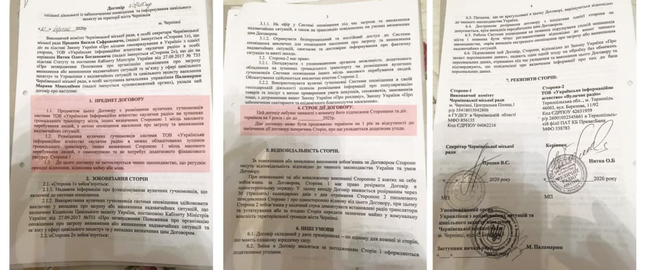 Олег Нитка продемонстрував і договір на підставі якого «Вуличне радіо» працює в Чернівцях, договір діючий і чинний до 2025 року.
