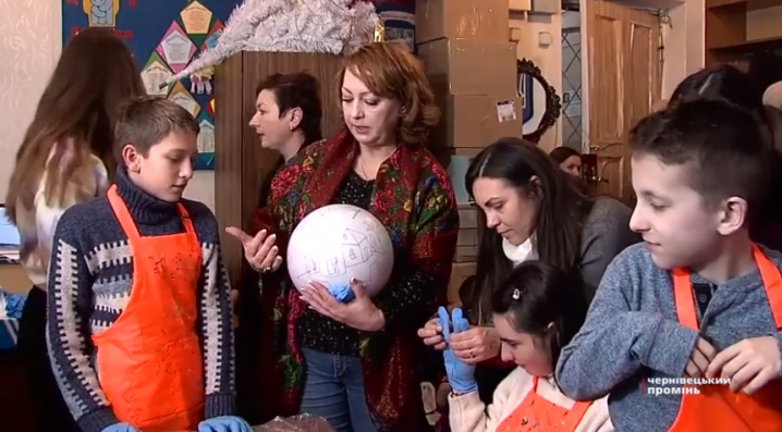 Аби дітям було легше, на кулях попередньо навели контури малюнків. На одній із них зобразили ангелика, який пролітає на нашою країно. Ескіз створила відома художниця з Буковини Юлія Косівчук.