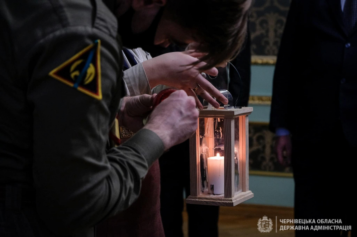 Вифлеємський вогонь миру передали буковинські пластуни голові Чернівецької обласної державної адміністрації Сергію Осачуку. Вони виконали пісню, що зазвичай супроводжує таке дійство, та засвітили лампадки, повідомили в ОДА.