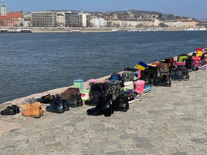Акція в Будапешті відбулася біля меморіалу "Взуття на березі Дунаю", який вшановує пам’ять угорських євреїв, безжально знищених нацистами. Перед вбивством вони змушували людей знімати взуття.