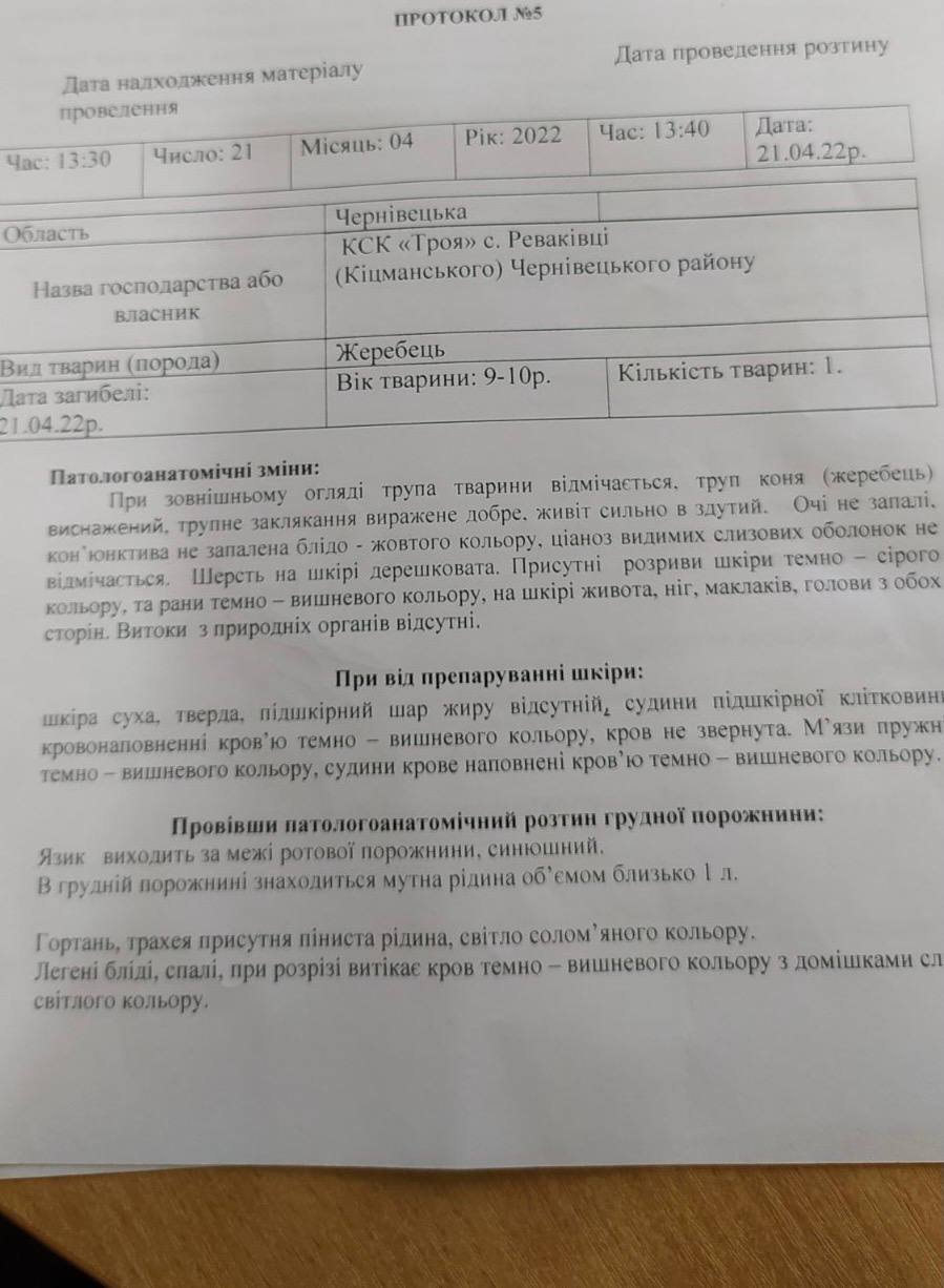 «Буковинська Троя», що знаходиться у селі Реваківці, за 20 км від Чернівців, від зневоднення, недоїдання та у страшних муках помер цирковий кінь, який перебував на території клубу із 2019 року: тоді