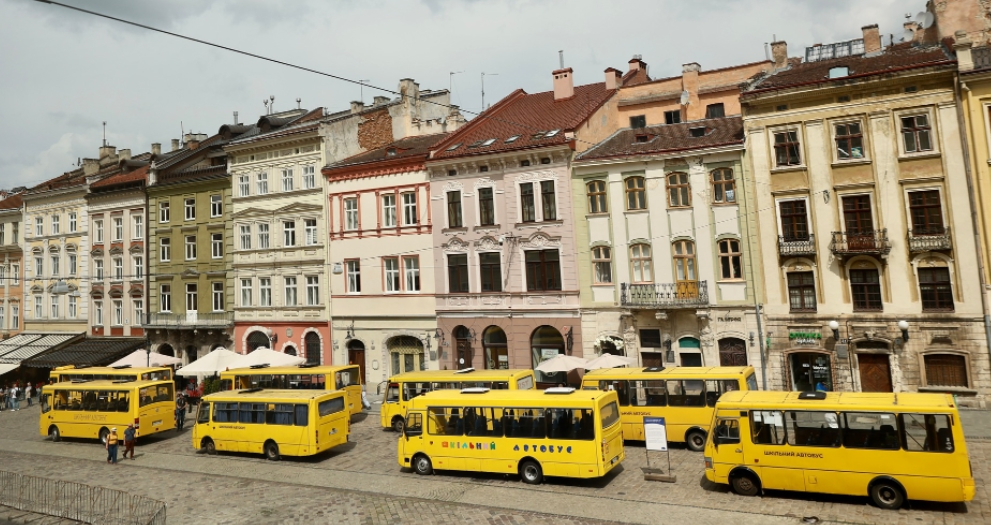 У центрі Львова виставили порожні шкільні автобуси в пам’ять про 243 дітей, яких вбили російські окупанти. Про це повідомив мер міста Андрій Садовий.
