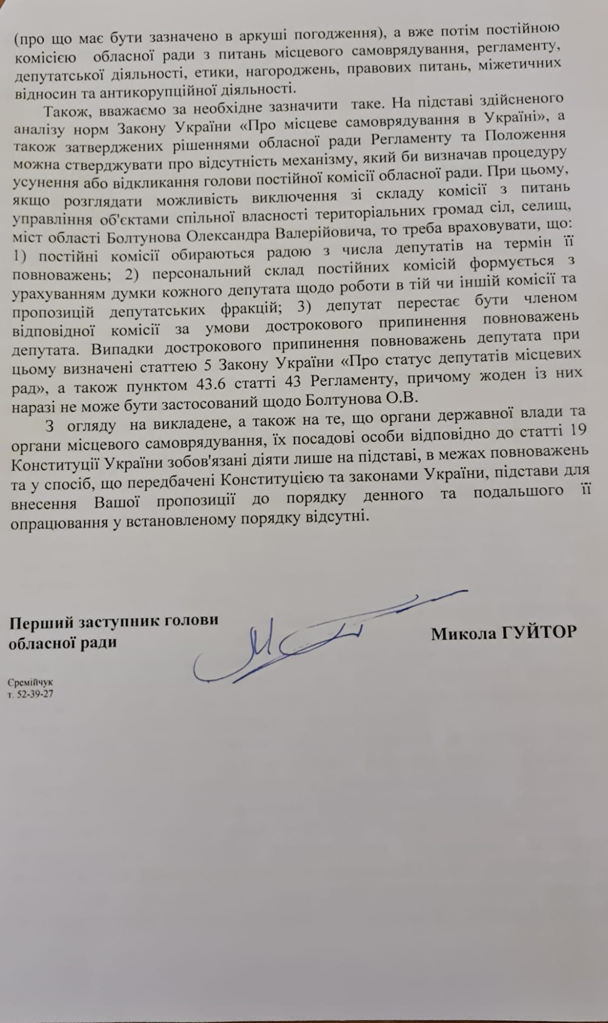 "Чесно кажучи, був прикро вражений! Нагадаю, що я зареєстрував проєкт рішення, відповідно до якого проукраїнські депутати мали встановити справедливість і відсторонити від управління майном буковинської громади ватника і ОПЗЖиста Болтунова. І що ж керівництво обласної ради? А вони вперлися руками і ногами і з впертістю захищають "свого ручного ватника". Проєкт рішення відхиляється.