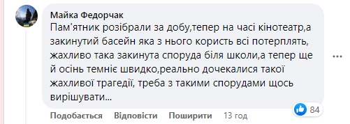 Чернівчани звертаються до міської влади вирішити питання з закинутими будівництвами у місті, особливо це стосується закинутого приміщення басейну поруч Чернівецького ліцею міської ради №20 (у минулому школа №27). Учора там перехожі помітили як дорослий чоловік розбещував малолітню дитину.