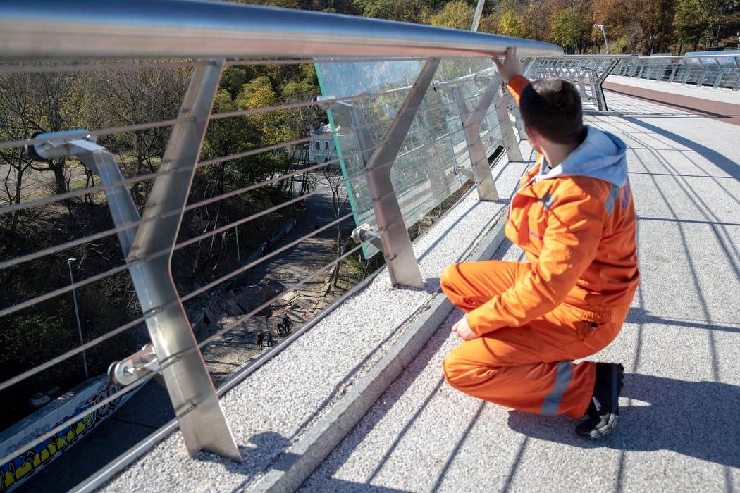 «Сьогодні на пішохідно-велосипедному мосту фахівці демонтували пошкоджені вибухом російської ракети елементи скла. А спеціалісти «Київміськсвітла» обстежили стан підсвітки перил. Освітлення відремонтують. Скло замовляємо. На його виготовлення потрібно до трьох тижнів. І вже невдовзі наш оновлений міст знову буде радувати киян і гостей столиці», - повідомив Кличко.