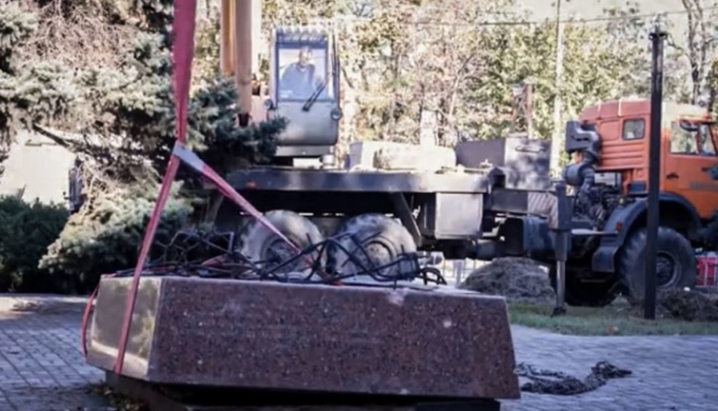 Пособниця окупантів, представниця центрального штабу громадської організації «Молода Республіка» Євгенія Кротова заявила, що окупанти не воюють із пам’ятниками, а прибирають символ «дезінформації на державному рівні».