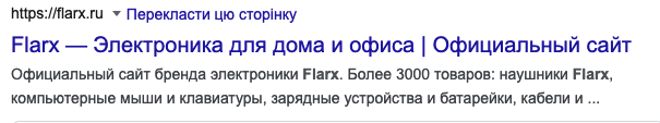Аби переконатися, що товар справвді російський перевірити можна в пошуковому сервісі Google. За запитом назви компанії "Flarx", пошукова система показує офіційний сайт компанії, з російським доменом .ru