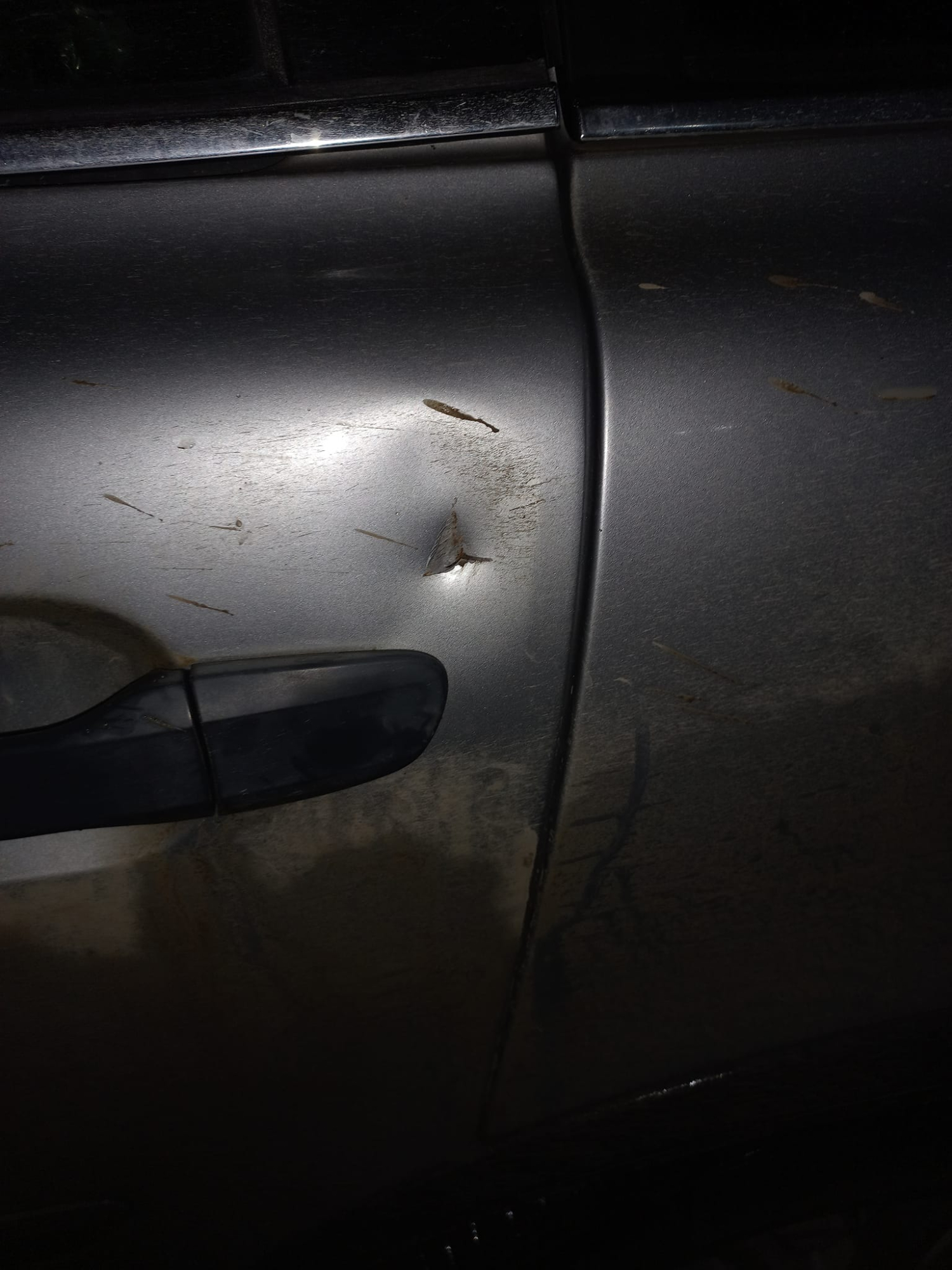 Сьогодні після завантаження передач, два буси та я автомобілем (який купили для захисників) поїхали до священника за благословінням в дорогу. Після благословіння буси рушили, я за ними, і тут почула, як щось вдарило по авто. Священник теж почув і повернувся з подвір'я подивитися, що сталося. Вийшовши, я побачила що вдарили в двері якимось предметом, добре, що не розбили скло", - пише волонтерка.