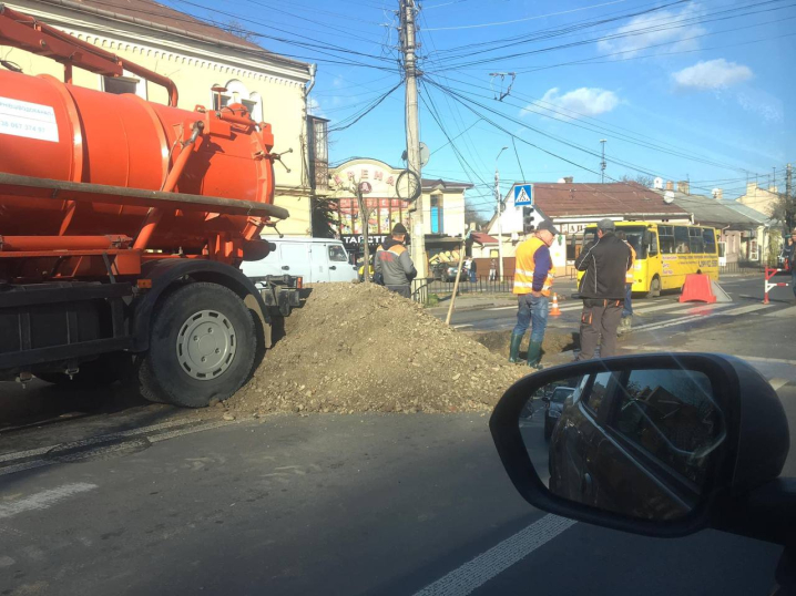 У центрі Чернівців комунальники підпрємства "Чернівціводоканал" розрили дорогу на провулку Український.