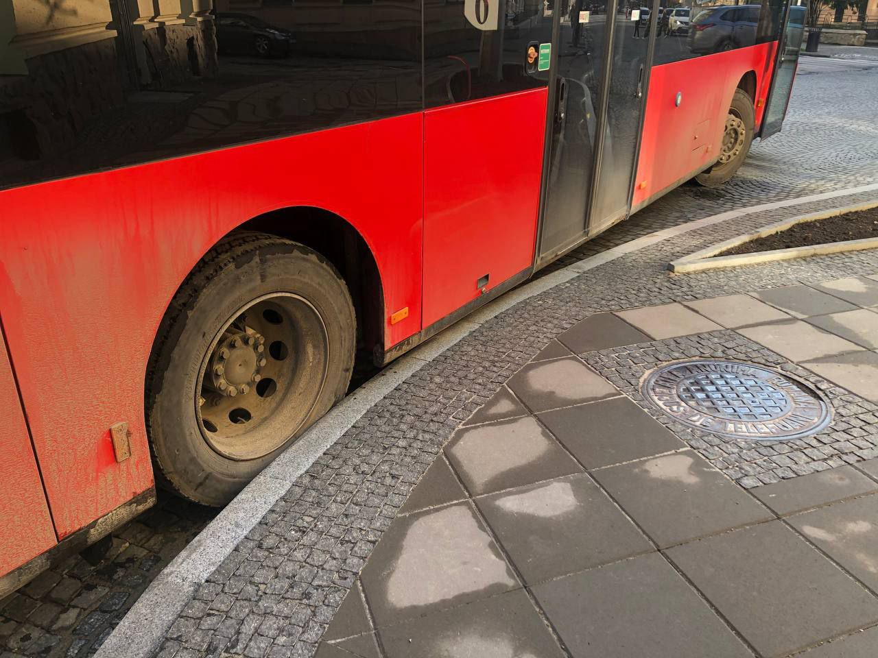 Автобуси і тролейбуси не можуть розминутися через розширення тротуару.