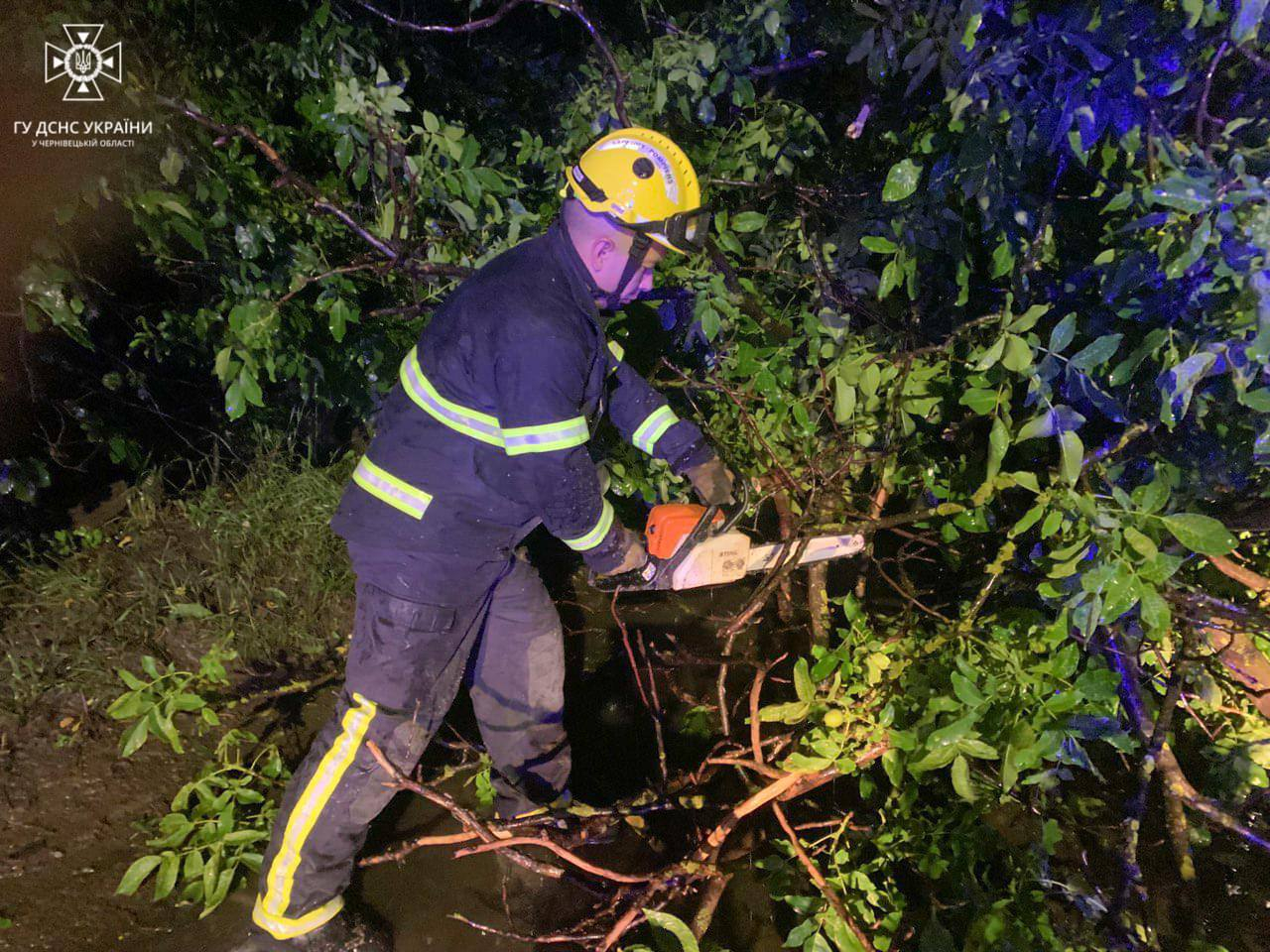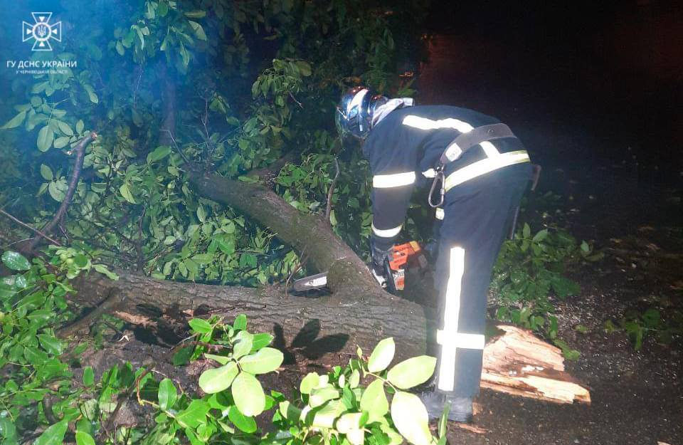 Також, на вул. Кармелюка у Чернівцях працівники групи рятувальних та відновлювальних робіт аварійно-рятувальної частини Аварійно-рятувального загону спеціального призначення розпилили та прибрали дерево, що впало на проїжджу частину та перекрило рух", - йдеться у повідомленні.