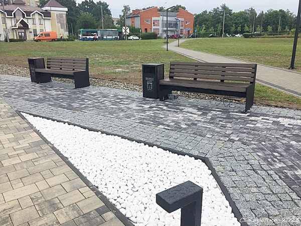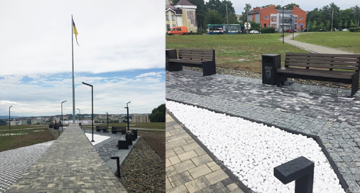 Фото прилеглої до флагштока території опублікував чернівчанин Степан Карачко. На знімках видно забруковану територію, сучасні лавиці та смітники оригінального дизайну з гербом міста Чернівці.