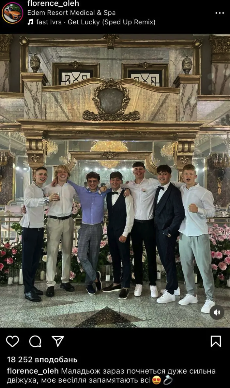 Журналіст Андрій Лохматов також оприлюднив фото і відео з весілля Олега Захарова, які сам наречений опублікував у своєму Instagram, де він має акаунт під ніком florence_oleh. Усі фото містять геотег Edem Resort Medical & SPA. Зараз профіль Захарова закритий.