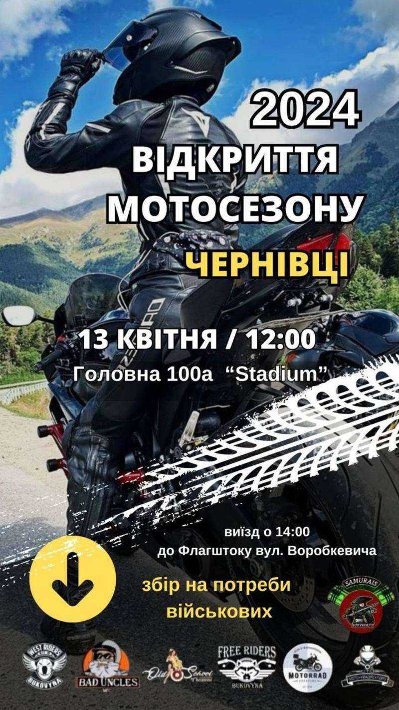 У Чернівцях 13 квітня байкери офіційно відкриють мотосезон. Мотоциклісти оголосили, що збиратимуть кошти на підтримку військових.
