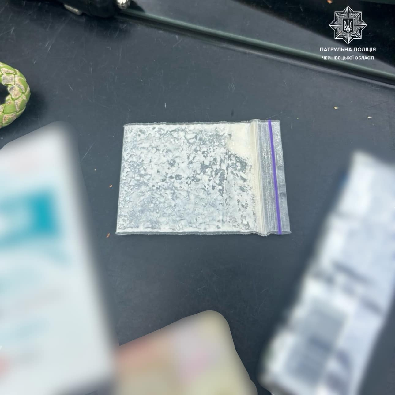 Поведінка водія видалася поліцейським підозрілою, тому патрульні згідно зі ст. 34 закону України "Про Національну поліцію" провели поверхневу перевірку. Під час перевірки патрульні виявили у громадянина зіп-пакет із залишками білої речовини, ймовірно, наркотичного походження.