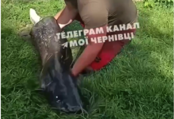Велетенського сома впіймали у озері парку «Жовтневий» у Чернівцях. Рибу виловили вчора. Вага рибини склала 44,3 кілограми.