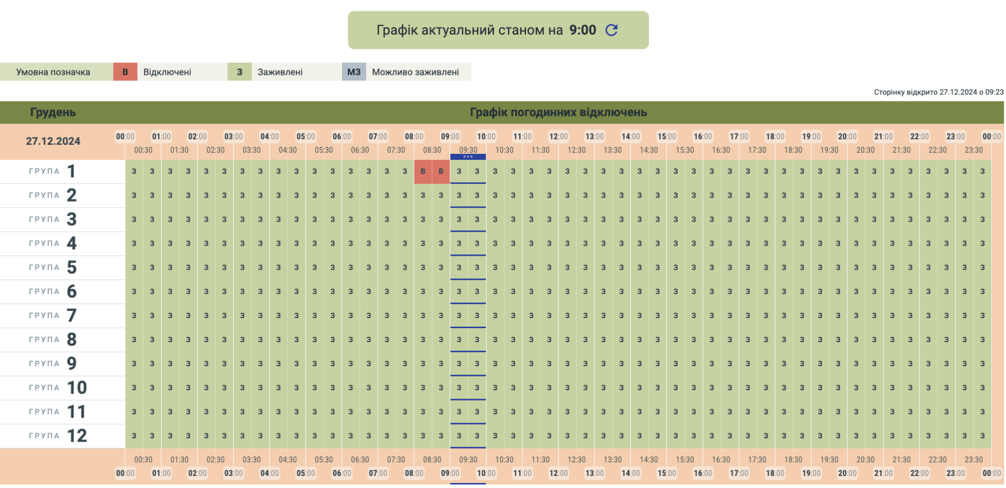 Графік стабілізаційних відключень електрики на Буковині 13 січня (оновлено)