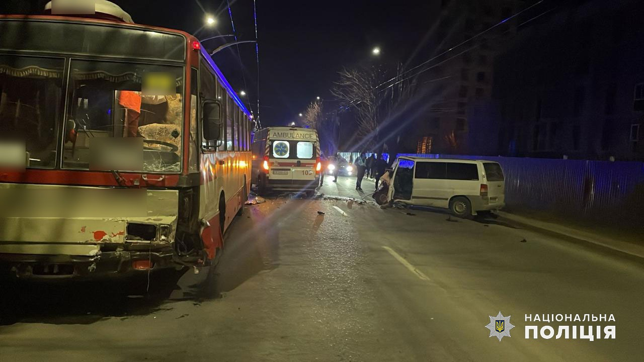 Правоохоронці попередньо встановили, що 21-річний житель села Сергії, керуючи автомобілем «Mercedes-Benz Vito», виїхав на зустрічну смугу руху та допустив зіткнення з тролейбусом, під керуванням 61-річного чернівчанина.