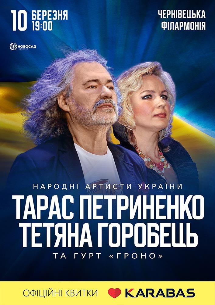 Квитки вже у продажу за посиланням: https://chernivtsi.karabas.com/taras-petrynenko-tetyana-horobets-do-dnya-sobornosti-ukrainy-1/order/
