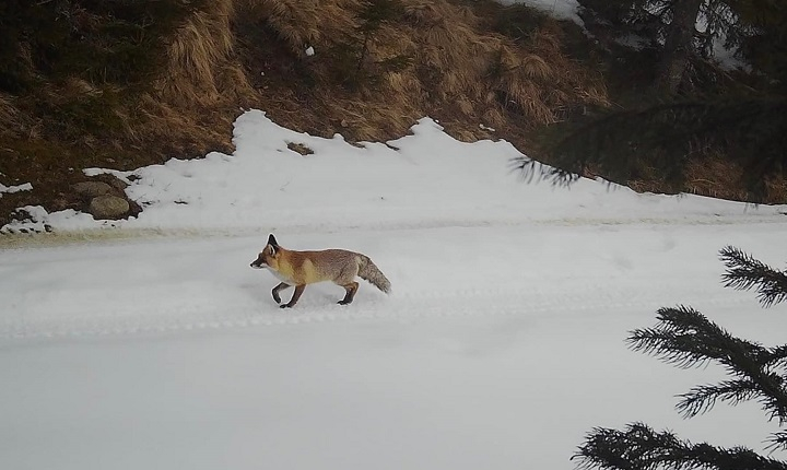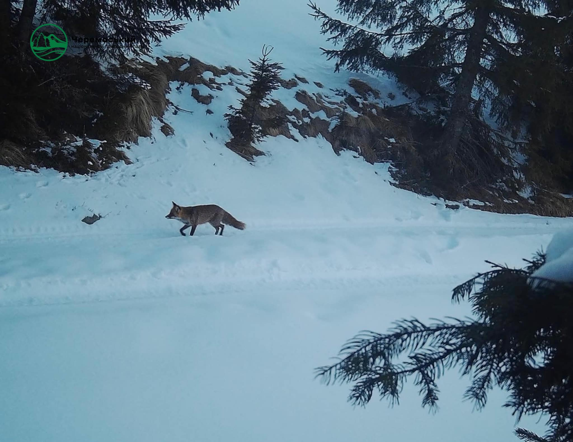 У «Черемоському» національному парку помітили хитрого мешканця. Це місцевий хижак – рудий лис (Vulpes vulpes), відомий в народі як Лис Микита.